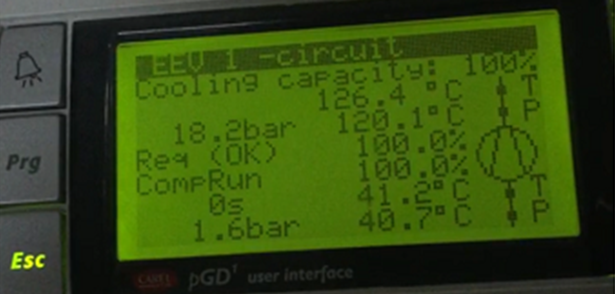 某地能源所實驗製作一個高溫熱水機的樣機,可以用來直接出熱水和蒸汽。機組選用漢鐘精機RC2-T系列餘熱接纳超高溫熱泵壓縮機,採用R245fa冷媒,蒸發器水溫50℃以上,冷凝器水溫120℃,制熱量100KW。