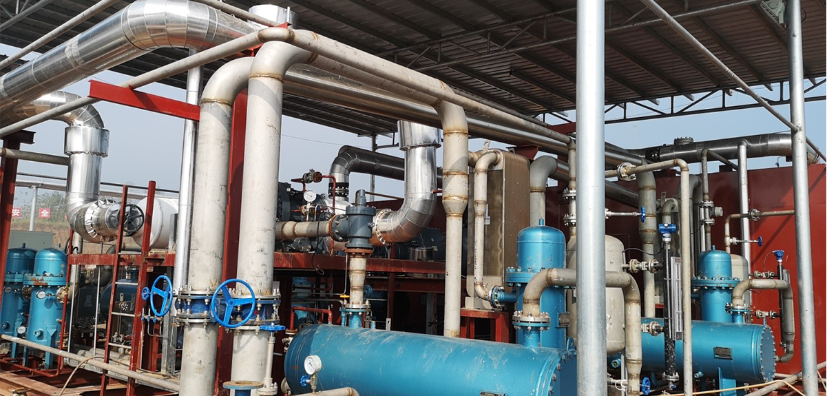 模此项目位于重庆某地,日产宇量30万立方的页岩气气田,由于此项目未铺设自然气运送管道向外送气,以是只能通过CNG或LNG车辆向外运输。该液化装备分成五大?樽槌桑1.初级过虑单位 ;2.制冷机组单位 ;3.冷箱单位 ;4.冷却单位 ;5.发电机组单位。其中制冷机组单位压缩机机组由AG直营第一品牌精机RC2-Z防爆型中低温通用压缩机组成 ;经由3级油分过滤,将混淆工质的含油量降到最低,混淆工质在冷箱的板式换热器内与气态的自然气举行热交流,再经由自然气自冷流程,最终使温度降至-165℃,实现自然气液化功效。也是现在AG直营第一品牌压缩机所能做到的最低温度。
